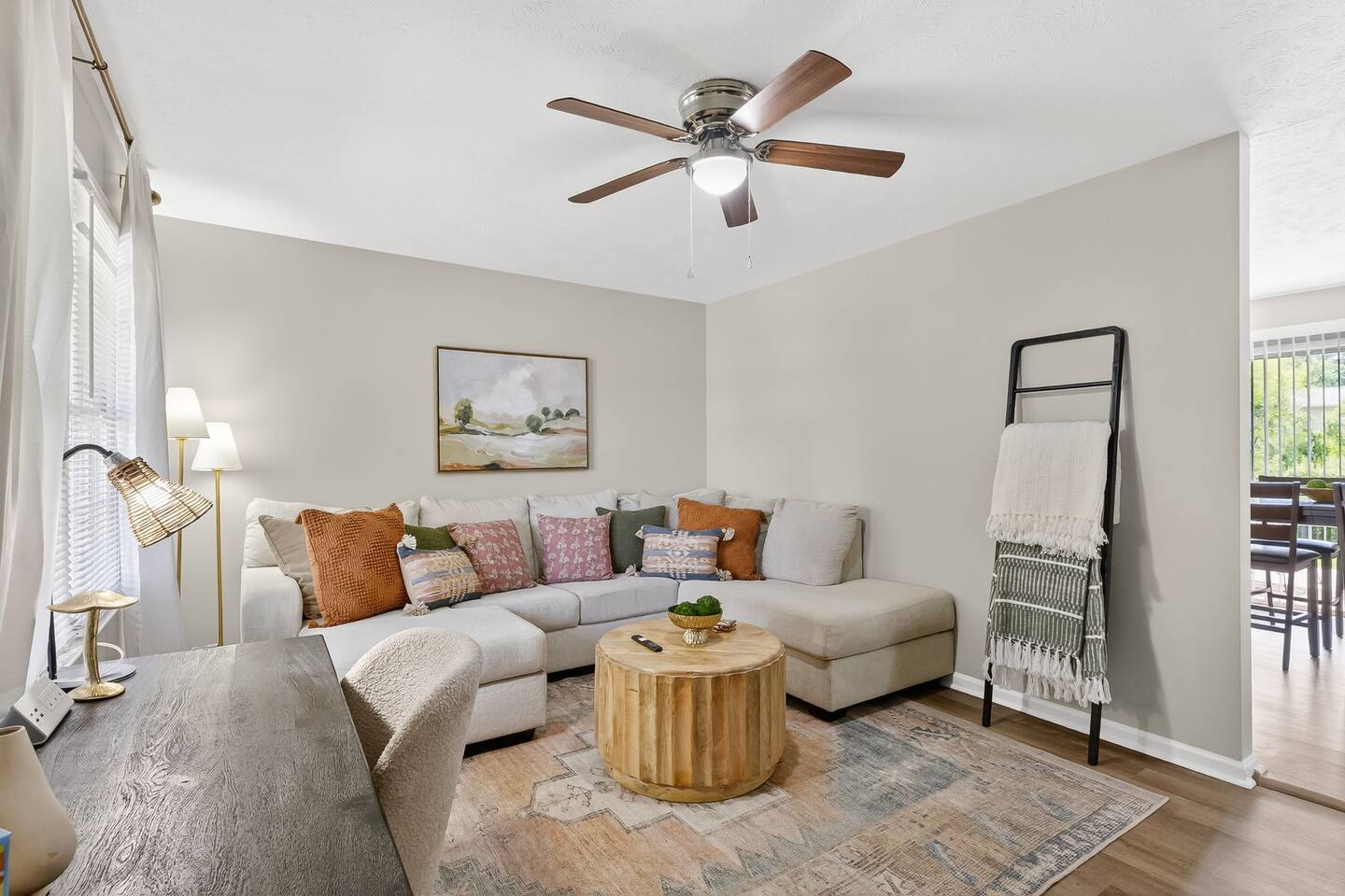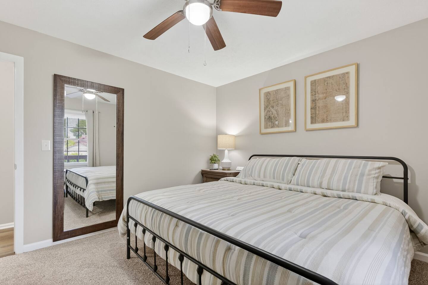This modern newly renovated 2-bedroom apartment offers a private, quiet space ideal for both short stays and extended visits. It features a spacious living room with a 65” smart TV, a cozy king bed with premium linens, and a fully equipped kitchen. The dedicated work area and fast fiber WiFi make it perfect for remote work. Free on-site parking and self check-in make your stay smooth and stress-free. 🛌 2 comfortable bedrooms with curtains and ceiling fans 🌿 Private backyard perfect for morning coffee or evening wine 🧺 Washer & dryer included — perfect for extended stays 🧼 Professionally cleaned between every stay 🌡️ Smart Thermostat that you can fully control for your comfort 🧭 3 Minutes to Fort Bragg/Fort Liberty 3 Minutes to Food Lion (Grocery Store) 3 Minutes to Shopping Centers 3 Minutes from McCormick Farms Carolina Barn 5 Minutes to Walmart 5 Minutes to Wendy's, Chipotle, Panera + Anything you can want! 10 Minutes from I-95 12 Minutes to Downtown Fayetteville 15 Minutes to Cross Creek Mall 15 Minutes to Cape Fear Valley Hospital 💰Weekly/Monthly Discounts available by selecting your dates or message me for custom quote.