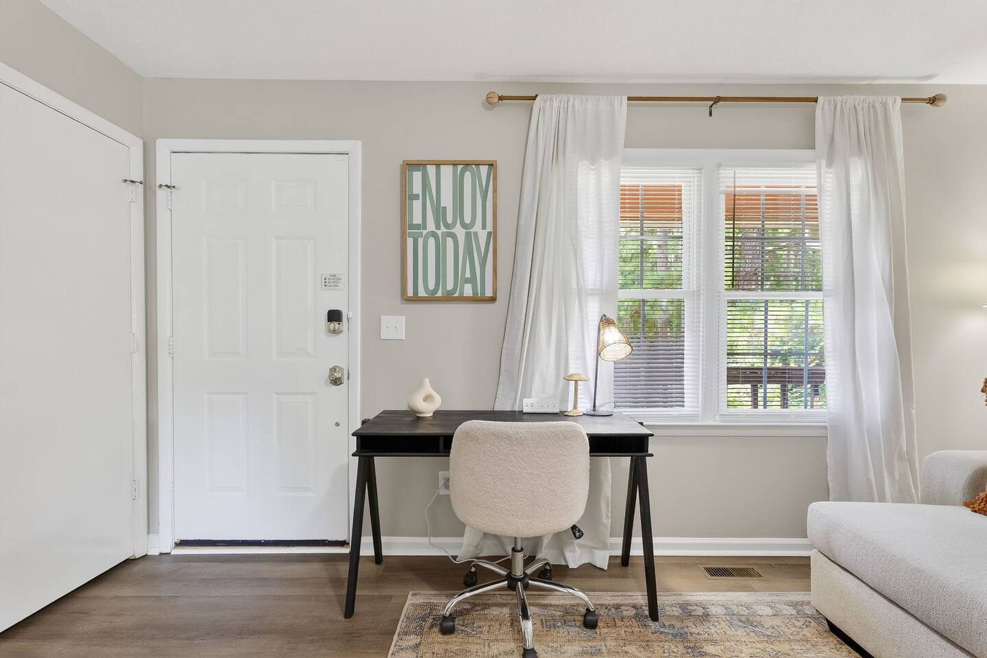 This cozy apartment is ideal for work trips, military visits, or weekend getaways. Just 5 mins from Fort Bragg/Liberty, Cape Fear Medical, and downtown Fayetteville. Whether here for a night or a month, this space is designed for comfort, privacy, and convenience. ✨ A bright, stylish living area with smart TV + high-speed WiFi 🍳 A fully equipped kitchen — cook your own meals, or reheat local takeout 🛏 A cozy king-size bed with soft linens 🚗 Free private parking and hassle-free self check-in